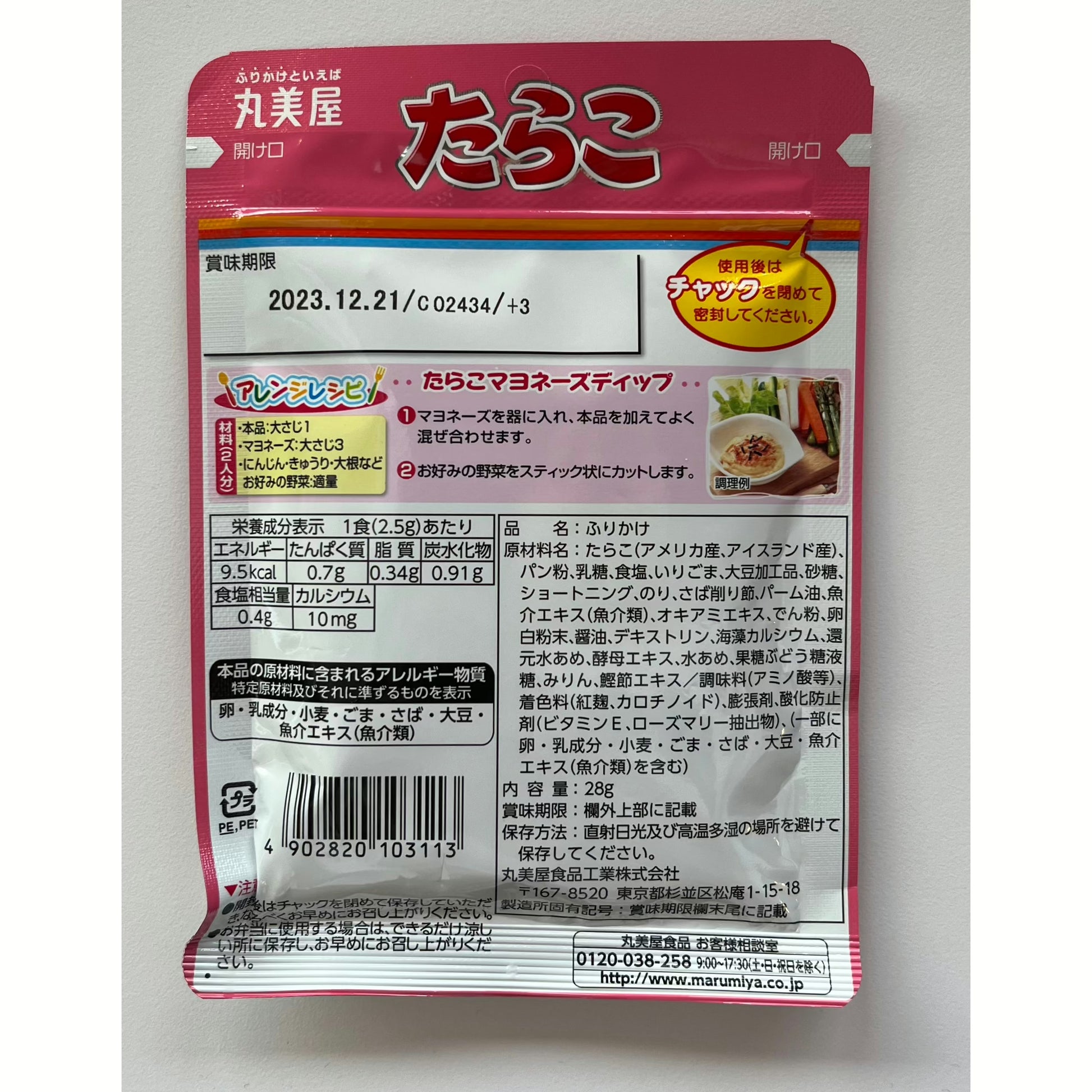 cod roe, breadcrumbs, lactose, salt, sesame, soybean processed products, sugar, shortening, seaweed, dried shaved mackerel, palm oil, seafood extract, krill extract, starch, chicken egg, soybean sauce, dextrin, seaweed calcium, reduced corn syrup, yeast extract, corn syrup, high fructose corn syrup, mirin, bonito extract, amino acids, coloring [monascus, carotene (e160a)], baking powder, antioxidant [vitamin e (e306), rosemary extract (e392)], flavoring.