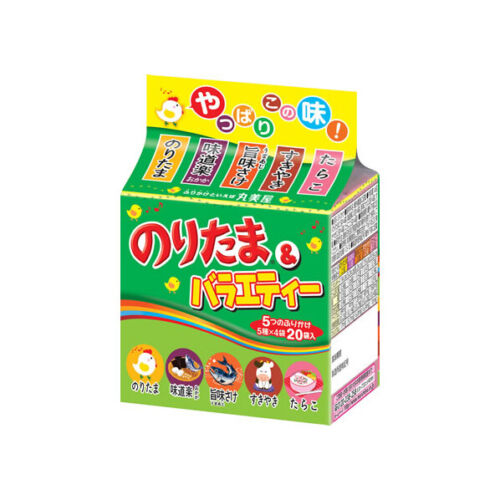 - Flavors Included: Noritama (egg); Tarako (Japanese Cod roe); Sukiyaki (crispy beef flake); Ajidoraku (crispy dried bonito flake); Umaajisake.