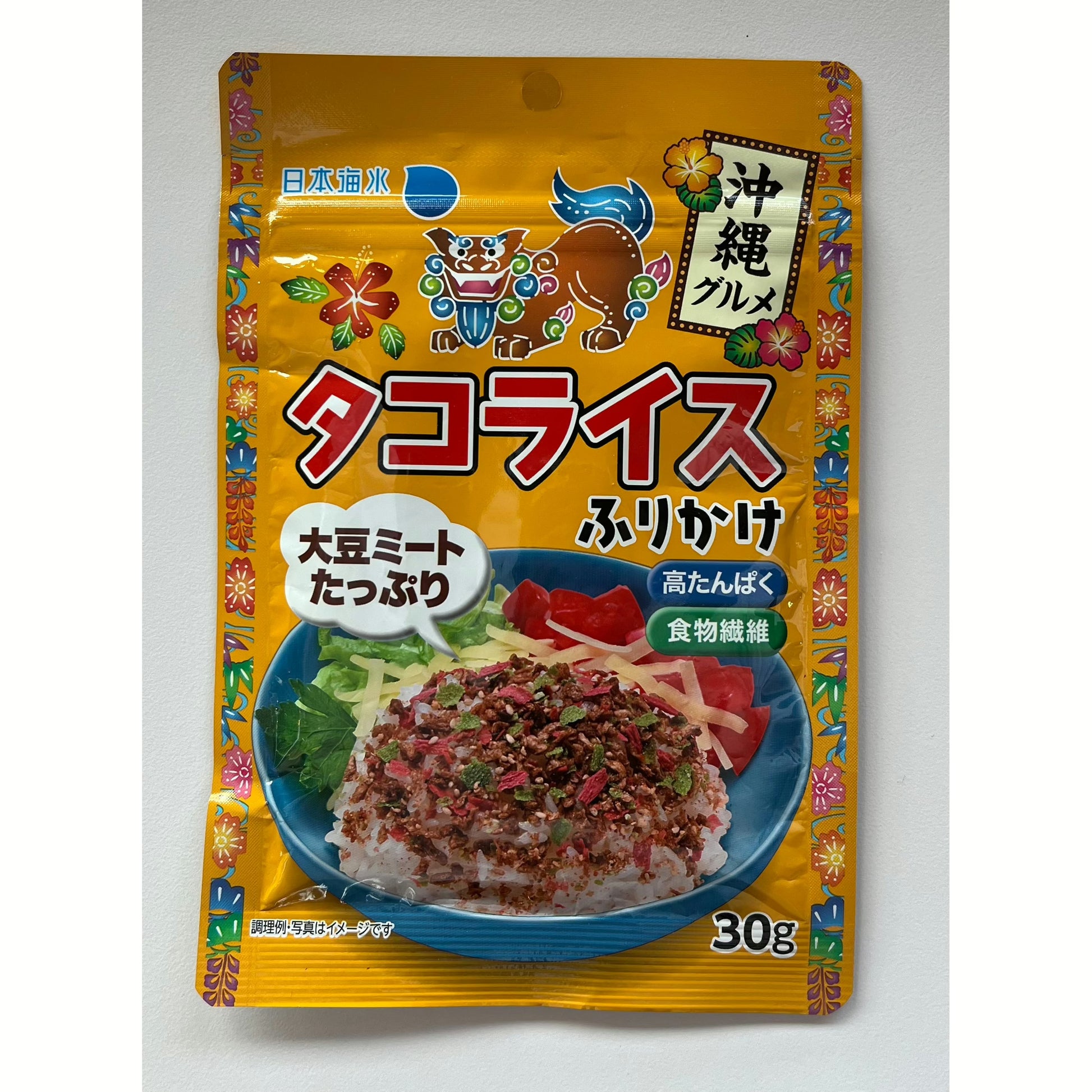 Taco rice flavored chips (granulated soy protein), cheese flavored chips (granulated soy protein, cheese powder), sesame, spinach flavored flakes (spinach paste), tomato flavored flakes (milk starch, tomato paste, cabbage starch, cabbage powder, sugar, seasonings, colorings, flavorings, antioxidants.